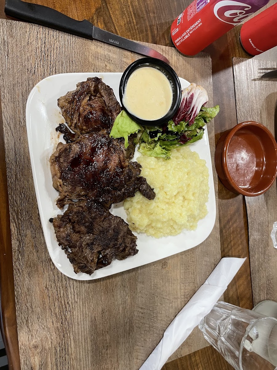 La purée et la sauce faite maison un délice, la viande est tendre, crème brûlée maison avec un bon goût de vanille